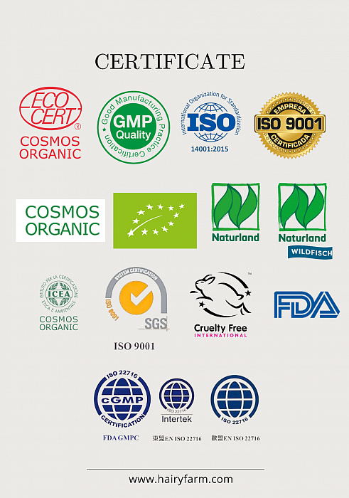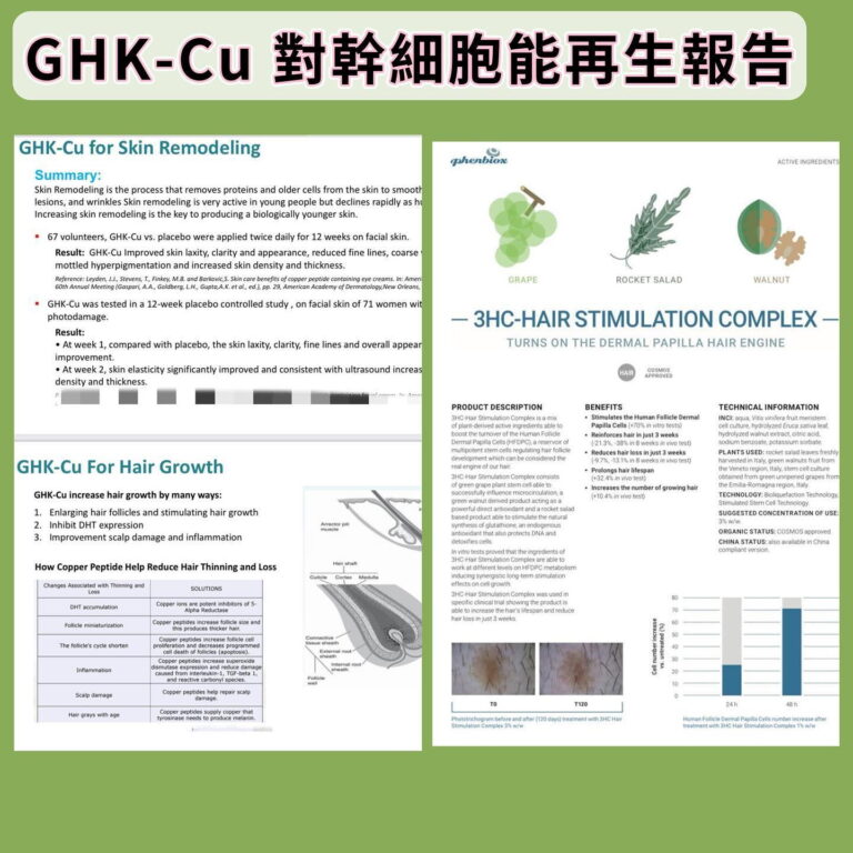 產品原材料選於意大利,成分均獲取美國FDA認可及歐盟認證,廠房並獲得GMP以及ISO 9001認證規範,進行產品配方不斷改進及研發。產品通過了多項國際認證及證書:如 ICEA、Cruelty-Free、VeganOK、GMP、ISO 9001、ISO 14001 等後續的學術研究專注在探討其是否可以刺激毛囊的生長而增生毛髮。一份研究比較了藍銅胜肽與 Minoxidil 的效果,研究使用了將基因突變的白化病老鼠為目標,結果顯示使用 5% 的 Minoxidil 與 5% ,藍銅胜肽試劑均可增加 80% 的毛囊增生。